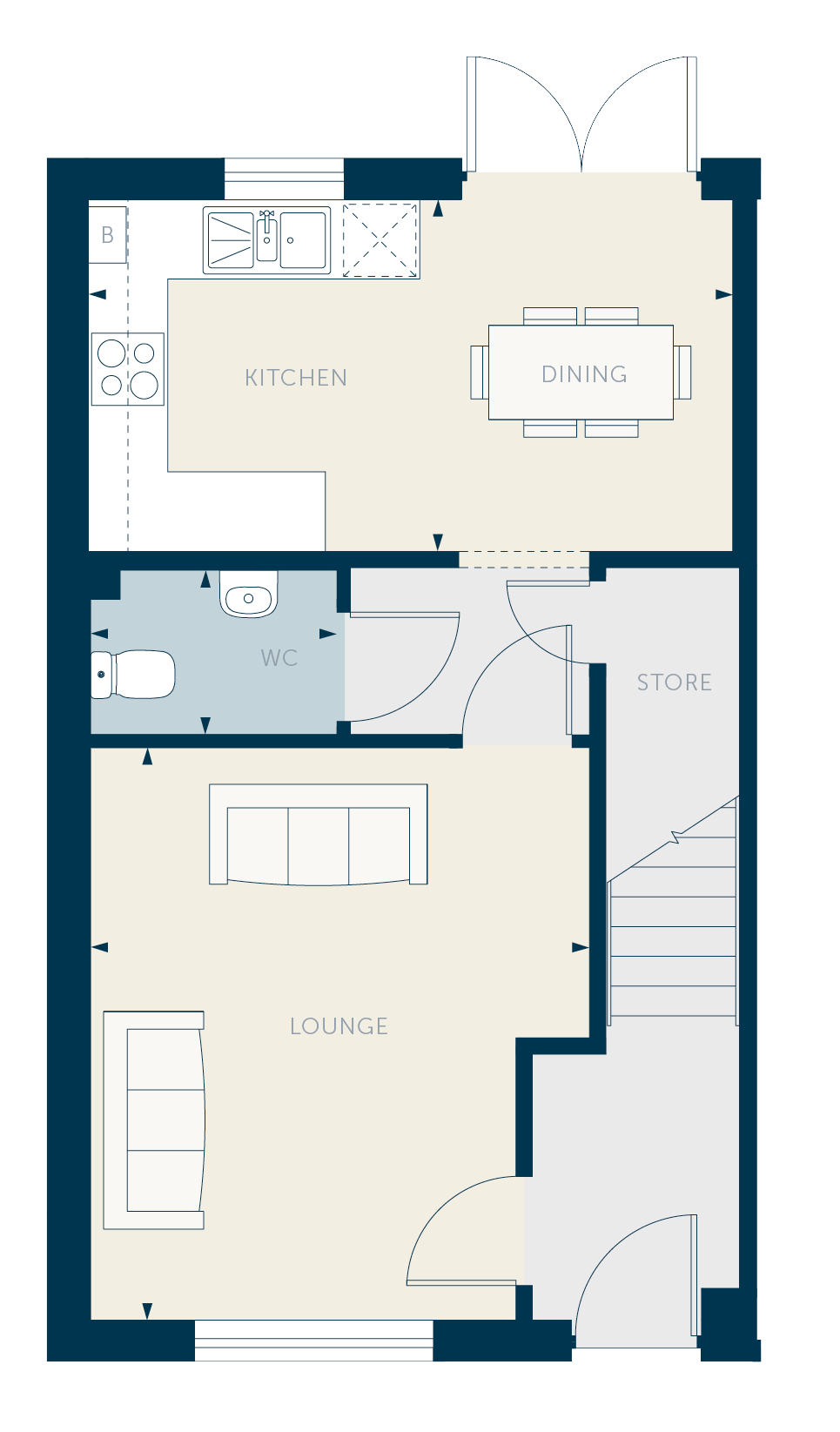 The Copenhagen’s welcoming entrance hall gives access to a light and bright lounge right at the heart of the home, with extra storage space built-in under the stairs. The contemporary kitchen with open plan dining leads to the private back garden through wide French doors.
