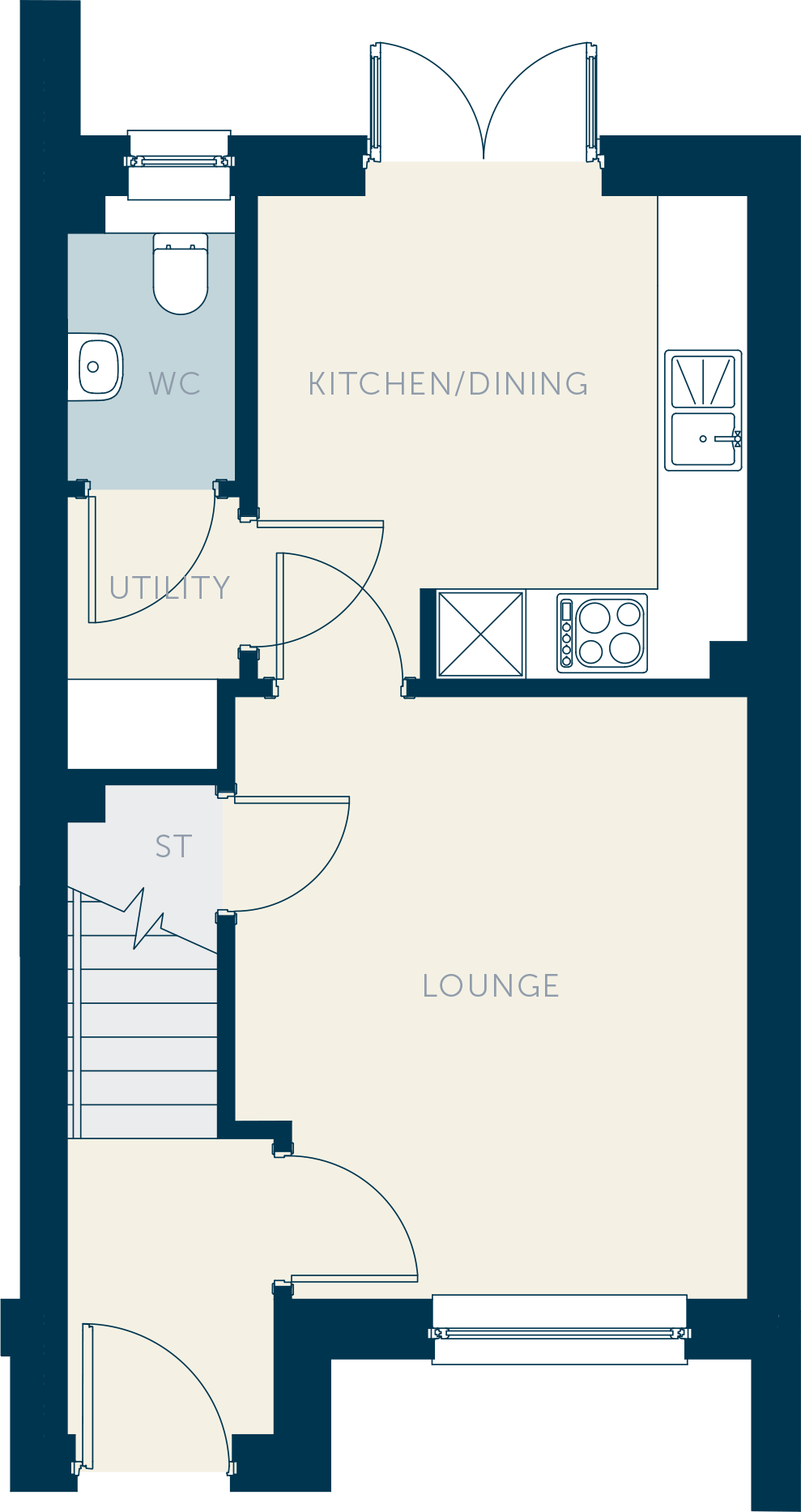 The well proportioned lounge, with separate kitchen and dining area, thoughtful under stair storage and utility room, helps keep everything streamlined, while French doors add light and air.