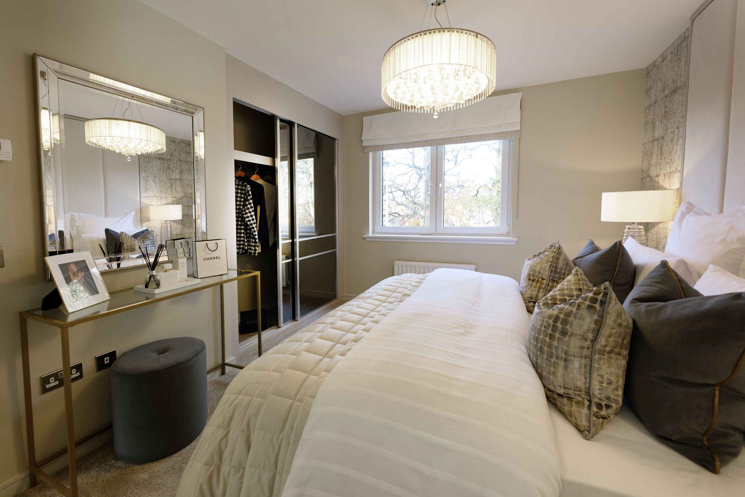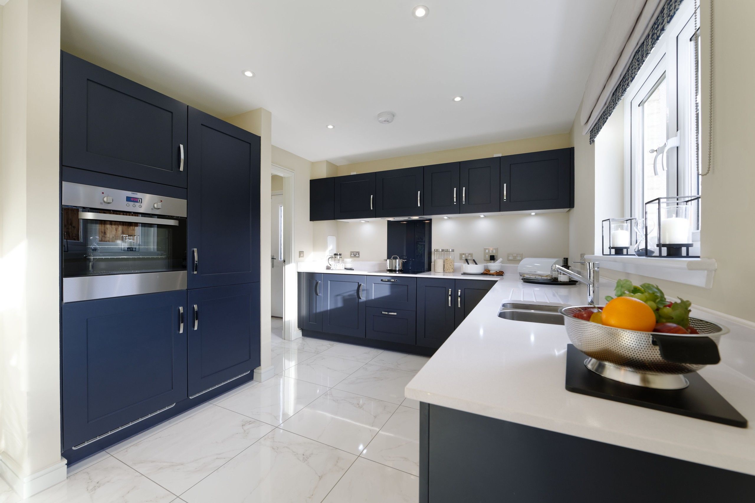 L-shaped hallway gives access to three bedrooms. The main bedroom has en suite shower facilities and built in wardrobes with additional storage to complete the feeling of indulgence. Additional wardrobes are optional in the second double bedroom and the third could be used as a nursery, child’s single or home office.